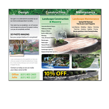 A well organized brochure design is the one thing that can push a potential customers decision to do business with you. People like to read, and having them read about you and your business is a huge plus. We will sit down with you and go over all types of ideas and looks for your brochure before any work is started. The brochures below are all custom designed for each specific client.
