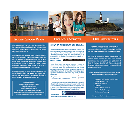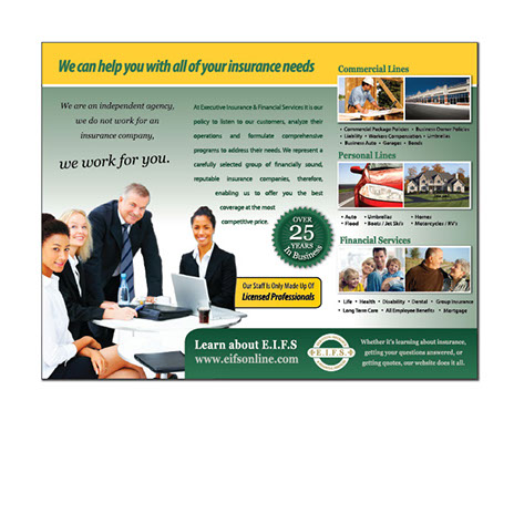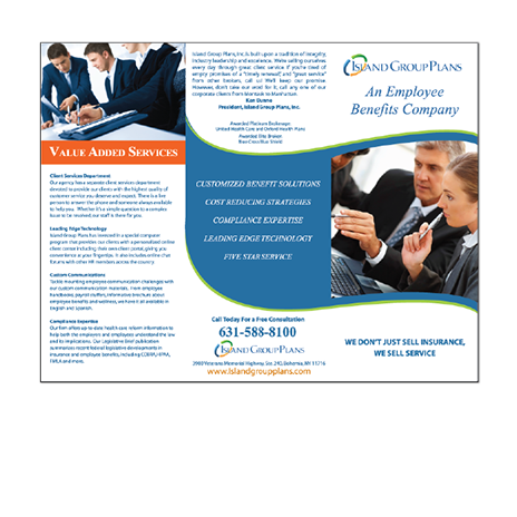 A well organized brochure design is the one thing that can push a potential customers decision to do business with you. People like to read, and having them read about you and your business is a huge plus. We will sit down with you and go over all types of ideas and looks for your brochure before any work is started. The brochures below are all custom designed for each specific client.